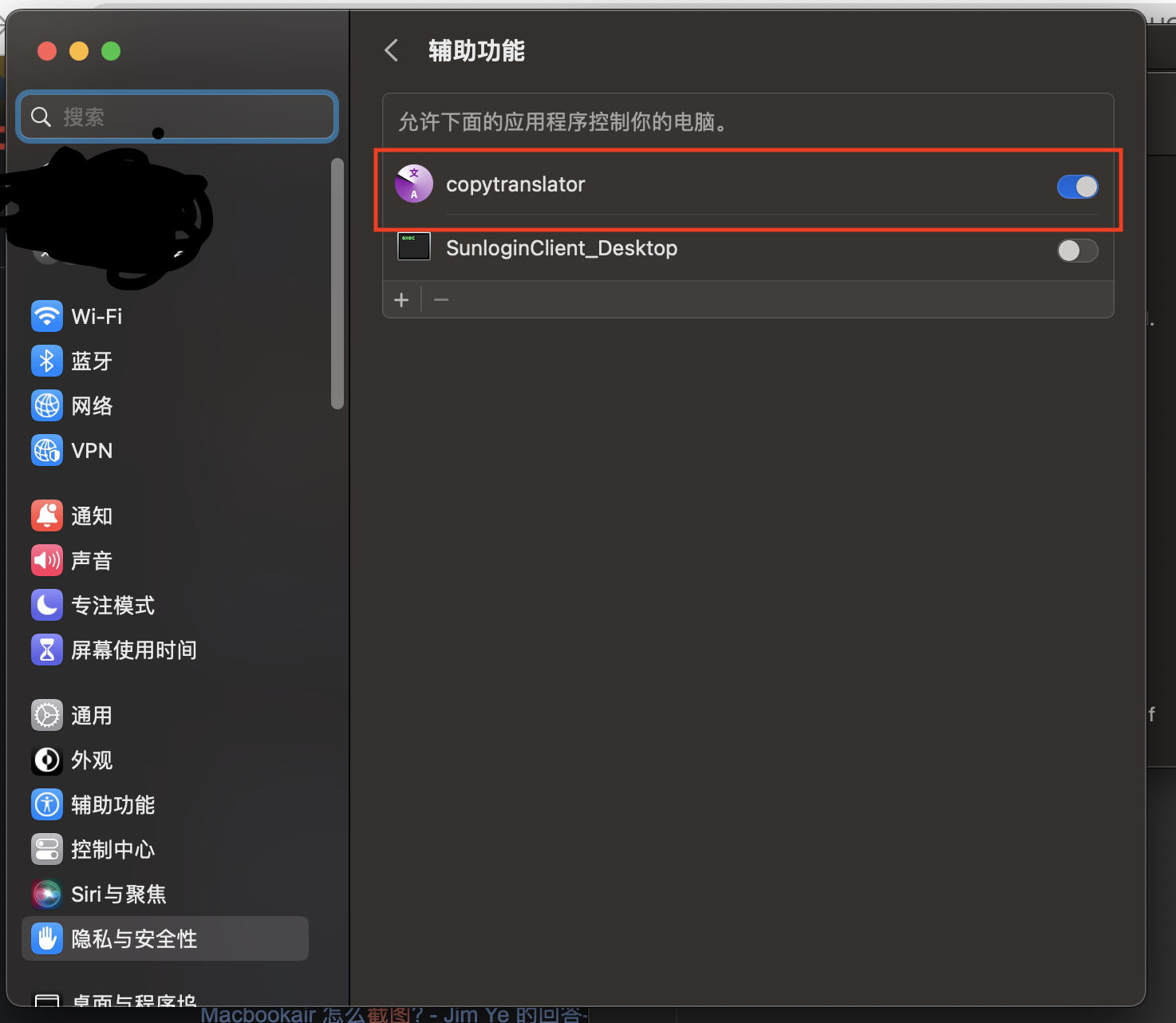 应用程序需要申请安全与隐私里的辅助功能权限,在辅助功能里明明已经授权了,但是app总是获取不到权限。