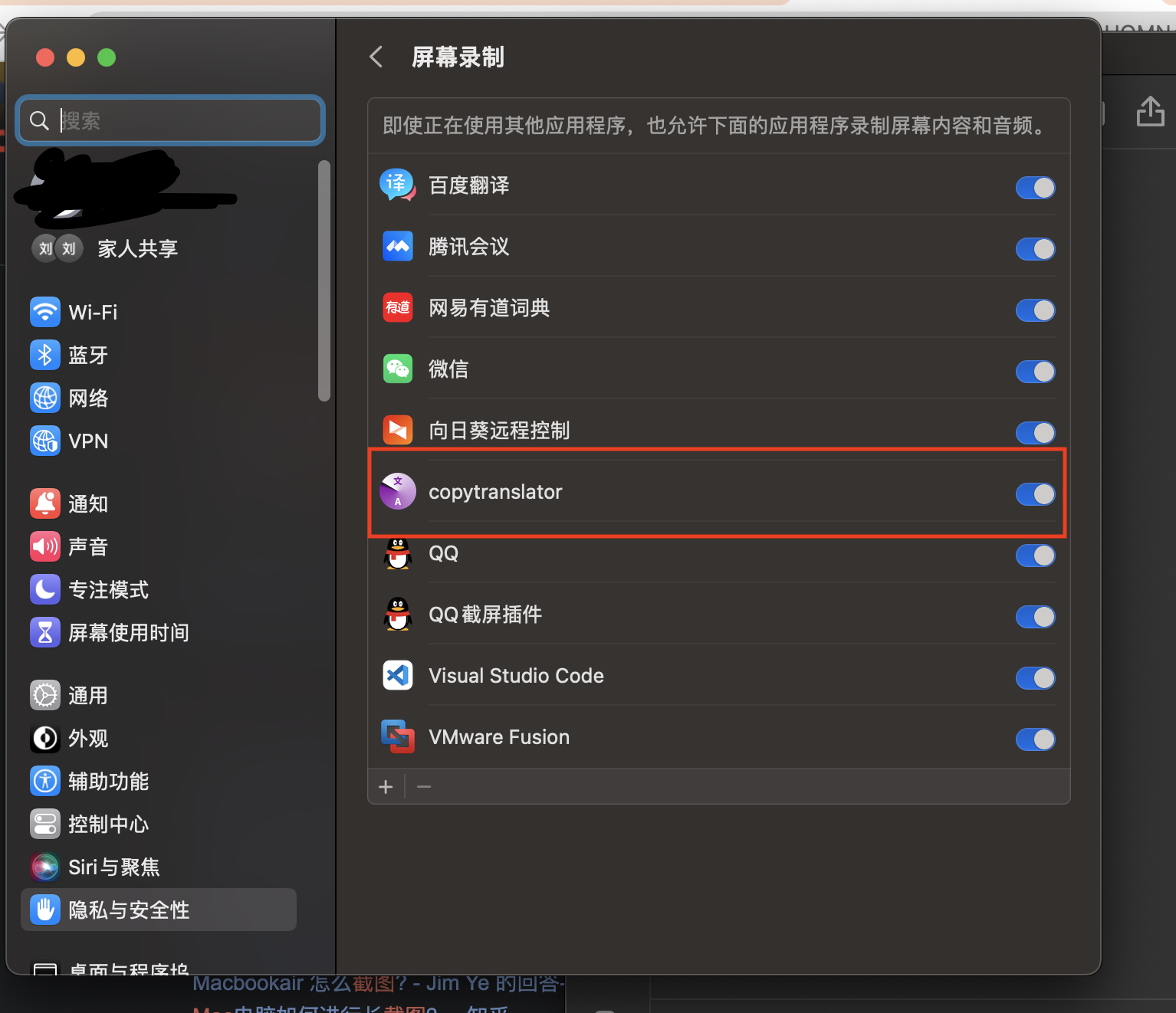 • 初次打开后请手动允许copytranslator使用辅助功能以及屏幕录制(点击查看示意图),否则copytranslator将无法正常使用拖拽复制,自动粘贴等功能。设置后仍有问题?点这里